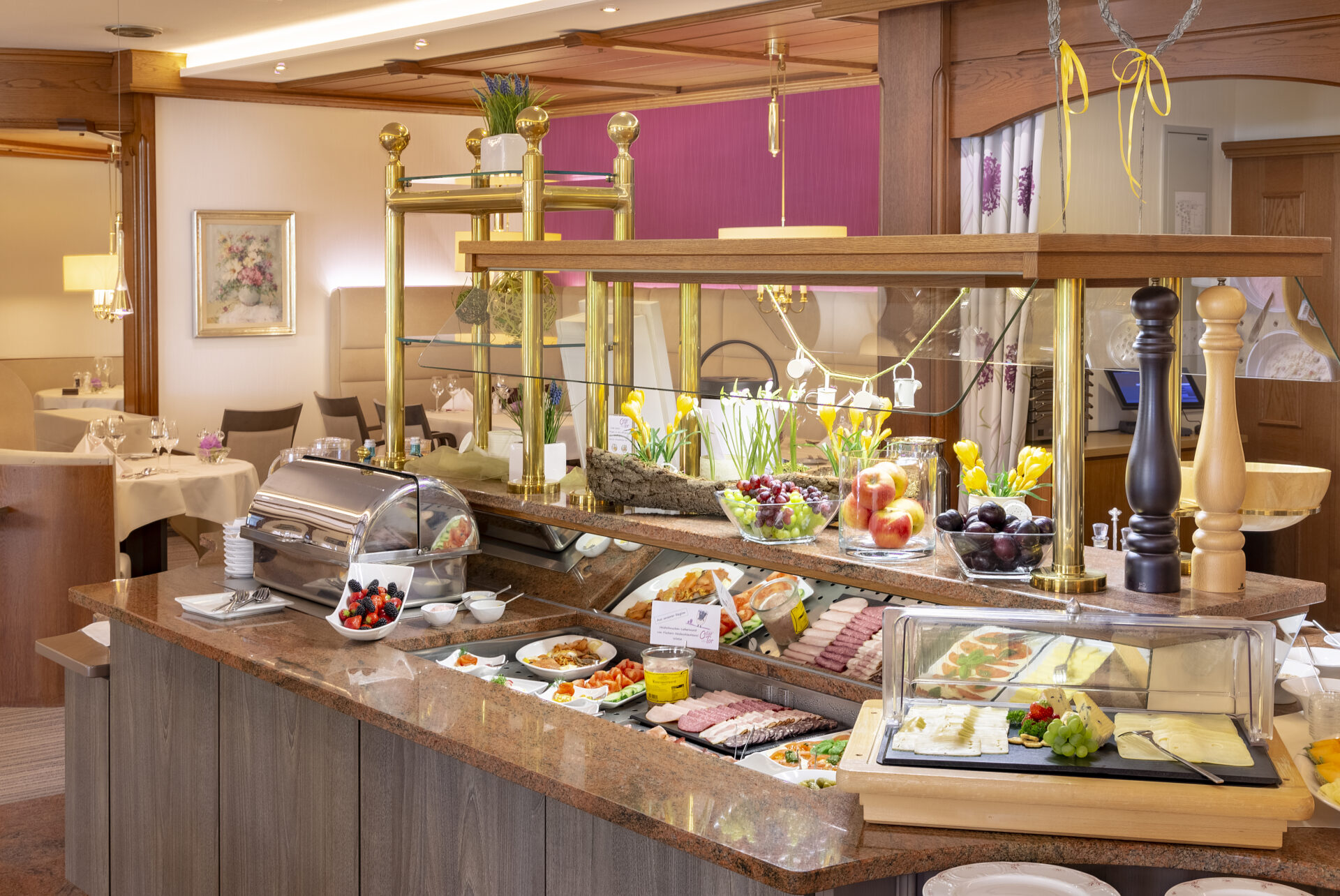 Bedienen Sie sich an unserem ausgewogenen Frühstücksbuffet mit warmen und kalten Brunch-Variationen.